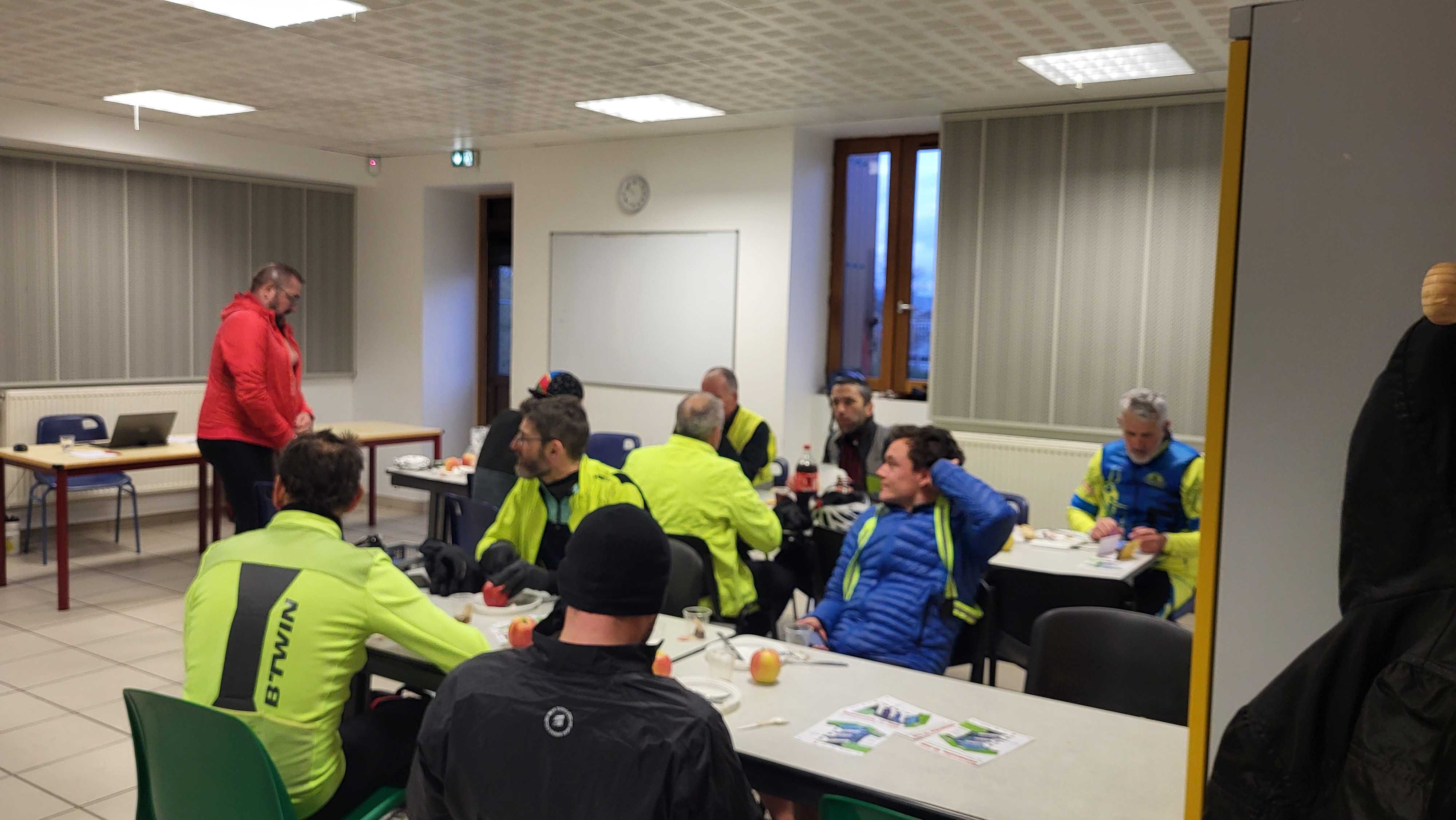 A 7h25 un briefing accès exclusivement sur la séucrité est organisé. Rentrez entier.e.s, soyez prudent.e.s, respectez le code de la route sont les 3 maitres mots du briefing.