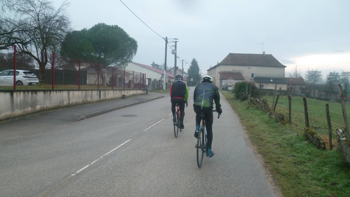 Sur la voie verte en direction de Villefontaine, ça roule à bonne allure. Chantal, en mode diesel, préfère ne pas se mettre en surchauffe. Christophe l'accompagne, mais le groupe est attentif et attend à chaque changement de direction. A Chamagneux Chantal et Christophe propose au groupe de continuer à sa vitesse pour éviter d'attendre, mais le reste du groupe n'en fait rien. On roule ensemble!!!