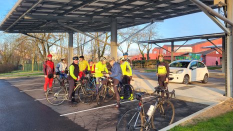 - Victor... Phénomène atypique. Il arrive avec son VTT... Ben non c'est la sortie route. euh.. .bon partez, je rentre chez moi (ce n'est pas loin certes) et je change de monture. Christophe lui transmet la trace GPX du parcours... et après 1h15 de route environ, on voit arriver notre Victor même pas essoufflé 😎.